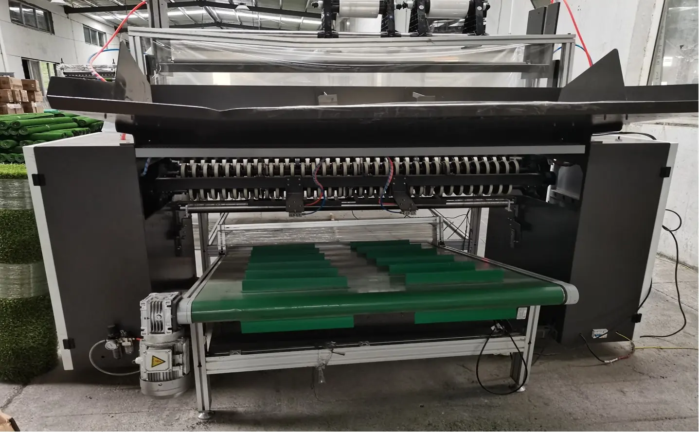 最近,易华草坪的生产车间来了一位新同事——全自动人造草坪绕卷机!这台设备堪称“绕卷狂魔”,让草坪打包从此告别手忙脚乱。
